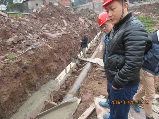 自查隊伍一行先后到宜賓市菜壩鎮(zhèn)給水管道工程、南環(huán)線兩路橋給水管道工程、大地坡二號路給水管道工程、大地坡三、四號路給水管道工程、中壩橋下改管工程等施工現(xiàn)場進行全面檢查指導,并對檢查中發(fā)現(xiàn)的不規(guī)范安全生產情況、存在安全隱患等問題,責令相關部門及施工班組長限時整改。