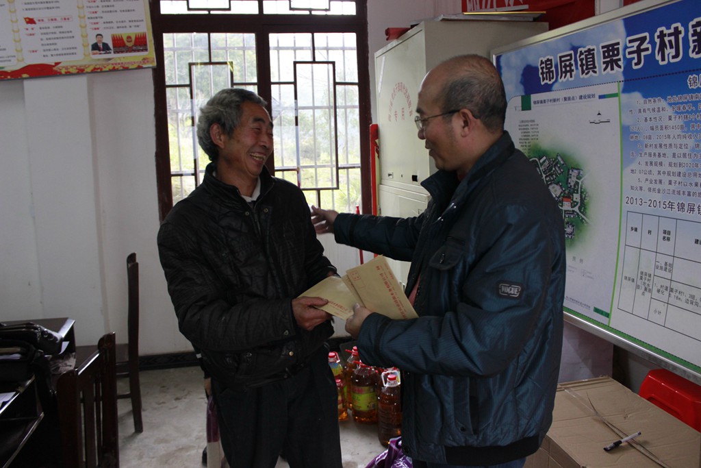 車子剛到村公所門口,就看到孩子們期盼的眼神,他們像等待自己歸家的親人一樣,讓我們一行人深受感動。大家迅速的將愛心包裹搬下車,唐書記將這寄托著大愛心的小包裹交到了孩子們的手上,孩子們燦爛的笑容感染了所有人,大家臉上都洋溢著溫暖的喜悅。